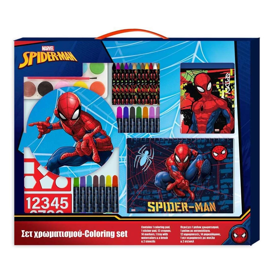A készlet tartalmaz egy színező füzetet, amely tele van izgalmas és inspiráló Pókember mintákkal, valamint különböző művészeti eszközöket, mint például 14 filctoll, 12 zsírkréta, vízfestékek és ecset, valamint két sablon, amelyek segítségével könnyedén készíthetők különleges minták. A csomagban található matricák további kreatív lehetőségeket kínálnak, és lehetővé teszik, hogy gyermeked egyedi alkotásokat hozzon létre.