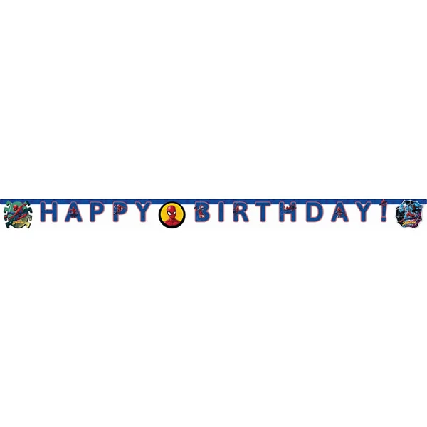 A Spiderman füzéren 17 db összetűzött betűs-pókember figurás karton található így csak a Happy Birthday! füzér két végét kell rögzítened és kész is a szülinapi dekoráció. Mérete: 2 m. A betűk mérete: kb 15 cm széles, 13 cm magas.