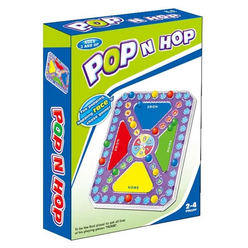 Egy hosszabb utazás során komoly fejtörést okozhat, hogy a szülők mivel kössék le a gyerekek figyelmét, hogy békésen teljen az út. A Pop 'n Hop: Ki nevet a végén? társasjáték remek megoldás erre a problémára, hiszen kifejezetten utazáshoz lett tervezve, így kicsi és nem szóródnak szét az alkatrészei. A szabályok egyszerűek, a játékosoknak körbe kell menniük a kijelölt pályán, és el kell érni a megfelelő színű helyüket. Általában az induláshoz 6-os dobás kell, az ellenfelet ki lehet ütni, ha pont arra a mezőre lépünk, ahol ő is áll, és a beérkezéshez pontos dobásra van szükség.