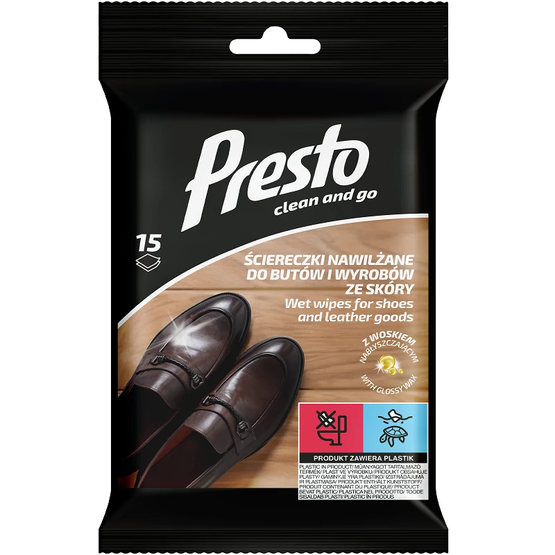 Presto univerzális nedves törlőkendő cipőhöz 15db-os kiszerelésben