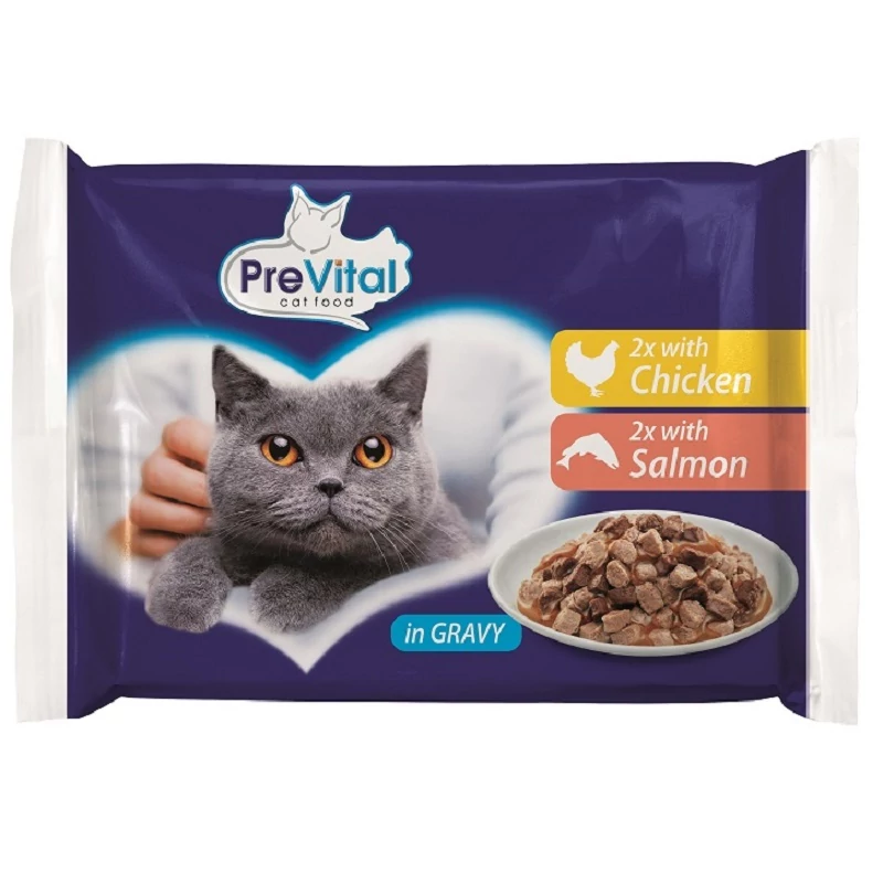 Prevital csirke és lazac alutasakos macskaeledel 4x100g