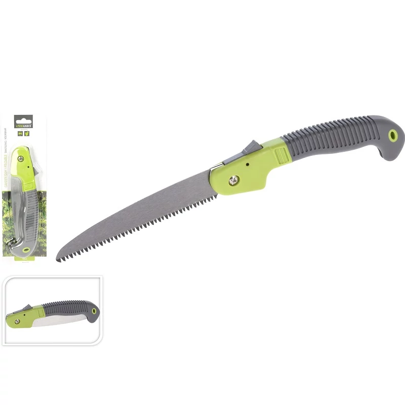 Fogantyú: A fogantyú ergonomikus kialakítású, fokozott kényelmet és szilárd fogást kínál. A nyél csúszásmentes anyaga még nedves körülmények között vagy izzadt kézzel is megakadályozza a csúszást. Az összecsukható kialakítás lehetővé teszi a fűrész biztonságos és kompakt tárolását és szállítását, védve mind a felhasználót, mind a pengét.