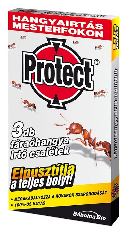 Komoly ártalom esetén a csalétek alkalmazás előtt 2 héttel a PROTECT háztartási permetezőszer felhasználásával a hangyák száma csökkenthető. Vigyázat! A csalétek alkalmazásakor semmilyen más rovarirtószert ne használjunk. A csalétek alkalmazását követően, ugyancsak PROTECT háztartási permetezőszerrel, zárópermetezéssel a megmaradt hangyák elpusztíthatók.