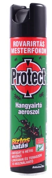Protect hangyairtó aeroszol, mely zárt térben és teraszon hangyák, valamint egyéb rejtett életmódú rovarok (pl. csótány, ágyi poloska, bolha, ezüstös pikkelyke stb.) irtására alkalmas.