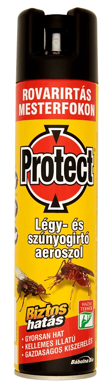 A PROTECT légy- és szúnyogirtó aeroszol repülő rovarok (légy, szúnyog, moly, stb.) gyors és hatékony ellenszere. Emberrel és melegvérű állatokkal szemben ártalmatlan. Kellemes citrom illatának köszönhetően a lakás bármelyik helyiségében alkalmazható.