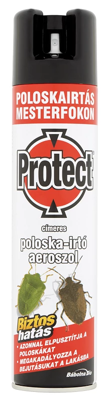 Protect poloska irtó aerosol, azonnal elpusztítja a poloskákat és megakadályozza bejutásukat a lakásba. Biztos hatás. Megelőzési céllal és közvetlenül a rovarra is használható.