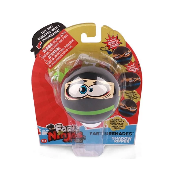Meg akarsz tréfálni valakit? Húzd ki a biztosítószeget ebből a Puki Nindzsa gránátból és gurítsd el az áldozatod mellett, és amint a gránát megáll a mozgásban, a tíz valósághű szellentéshang közül egyet hallani fogsz. Ha úgy döntesz, hogy kulcstartóként használod, akkor a hangokat úgy is aktiválhatod, hogy egy másodpercig lenyomva tartod az érzékelőt. A Puki Nindzsa gránátok sorozat négy különböző, összegyűjtögethető gránátból álló kollekció, amelyet az egyik kedvenc Puki Nindzsa figuráidról mintáztak.