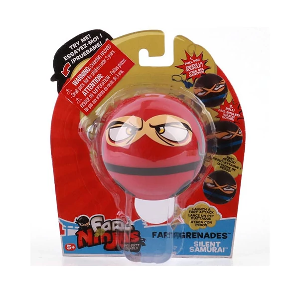 A nindzsák harcművészete a meglepetésen és a megtévesztésen alapul, így ez a gránát minden tekintetben megfelel az elvárásoknak, hiszen a meglepetés garantált. Egyszerűen húzd ki a biztosítószeget és gördítsd el a következő áldozatod mellett, és amint megáll a mozgásban, a 10 valósághű szellentéshang közül egyet hallani fogsz. Ha úgy döntesz, hogy kulcstartóként használod, akkor a hangokat úgy is aktiválhatod, hogy egy másodpercig lenyomva tartod az érzékelőt. A Puki Nindzsa gránátok sorozat négy különböző, összegyűjtögethető gránátból álló kollekció, amelyet az egyik kedvenc Puki Nindzsa figuráidról mintáztak.