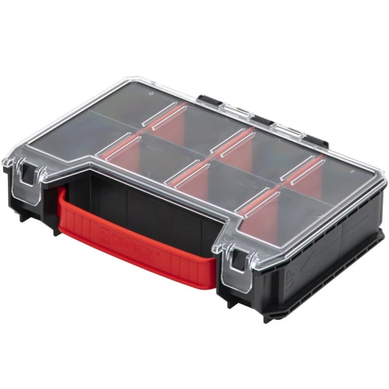 A Qbrick System PRO Organizer Multi kiegészítője a Qbrick System PRO Toolboxnak - a speciális síneknek köszönhetően a Qbrick System PRO Toolbox 5 db Qbrick System PRO Organizers Multi befogadására képes.A PRO Multi szervező 8 rekeszt tartalmaz a kis műhelykiegészítők elrendezésére.A kivehető elválasztók lehetővé teszik a szervező belső terének tetszés szerinti rendezését.A polikarbonát fedél és a kényelmes fogantyú biztosítja a tartósságot és az ergonómiát. Technikai adatok Hossz (mm) 257 Szélesség (mm) 182 Magasság (mm) 65 Kapacitás (l) 1.7