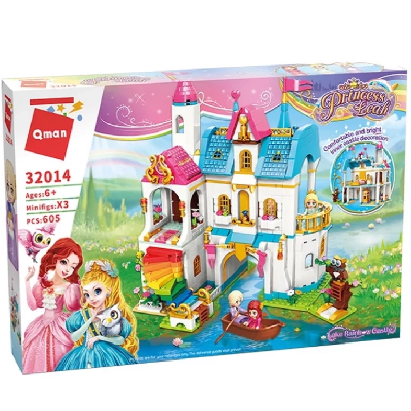 QMAN márkájú, minőségi, készségfejlesztő építőjáték lányoknak. Ez aztán nem kicsi kastély, melyet 605 db építőkockából tudsz megépíteni! Ez a nagyszerű, igazán látványos lányos műanyag építőjáték természetesen tartalmazza mindazt, ami a képen látható, a minifigurákat, csónakot is!