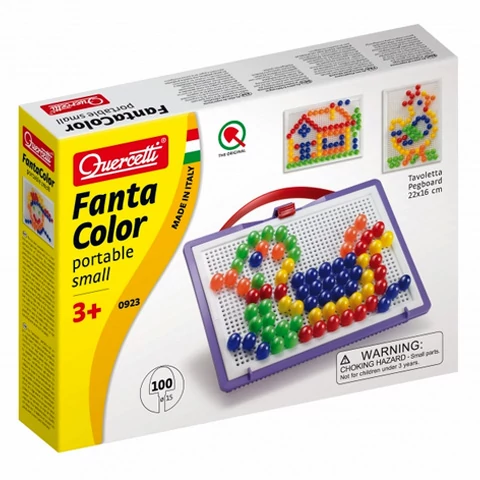 Egy igazán színes és izgalmas játékra invitálunk most Téged. Ezzel a nagyszerű hordozható készlettel garantáltan nem lesznek unalmasak a játékkal töltött perceid, ráadásul utazás során sem kell megválnod kedvenc pötyijeidtől. A csomagban minden eszközt megtalálsz ami az alkotáshoz szükséges lehet: a munka felületként használható műanyag táblát ami alá behelyezve a sablont csak követned kell a mintákat, hiszen megmutatják neked hová milyen színű pötyit kell leszúrnod. Azonban, ha a saját ötleteid szeretnéd kivitelezni azt is bátran megteheted, csak a képzeleted szab határt annak milyen képeket készítesz el a pötyik segítségével. Jó szórakozást!