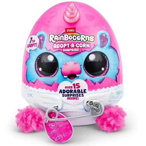A Rainbocorns: Adopt-a-Corn sorozatban hét különböző plüss bébikornist lehet összegyűjteni, így mindenki megtalálhatja a saját kedvencét. A figurák egyedi megjelenésűek és mindegyikük különböző stílusú, színvilágú és díszítésű, ami még izgalmasabbá teszi a gyűjtögetést. Ezek a kis figurák tökéletesek arra, hogy a gyerekek saját kis fantáziavilágot építsenek fel, miközben gondoskodnak az örökbefogadott kis bébikornisukról.