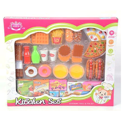 Egy különleges szettet hoztunk most el kislányodnak ,aki biztosan örülni fog majd neki, hiszen ebben a szettben minden megtalálható ami egy konyhába élelmiszerként kellhet. A szettben több édesség található, melyek bolti csomagolást kaptak, de gofri, pizza, torta és különböző kekszek is vannak benne. Ezeken kívül még sült krumplit is találhatunk és különböző szószokat is, így a kis konyhájának tökéletes kiegészítője lehet ez a szett, amihez már csak tányérokra van szükség és kezdődhet is a móka.