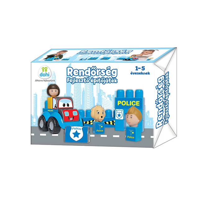 Ebben a csomagban a gyerekek mindent megtalálnak, amivel egy vagány kis rendőrséget építhetnek a játékvárosukban. A nagyszerű szórakozás mellett az építőjáték remekül fejleszti a gyerekek kreativitását, míg az építőelemek összeillesztése a finom-motorikus képességeket. A játék építőelemei kifejezetten a kisgyerekeknek lett kitalálva, emiatt olyan nagyméretű alkotóelemeket tartalmaznak, amelyeket a gyerekek képtelenek lenyelni, és a méretüknek köszönhetően a kicsik könnyen meg tudják fogni, valamint az összeillesztésük sem okoz gondot a számukra.