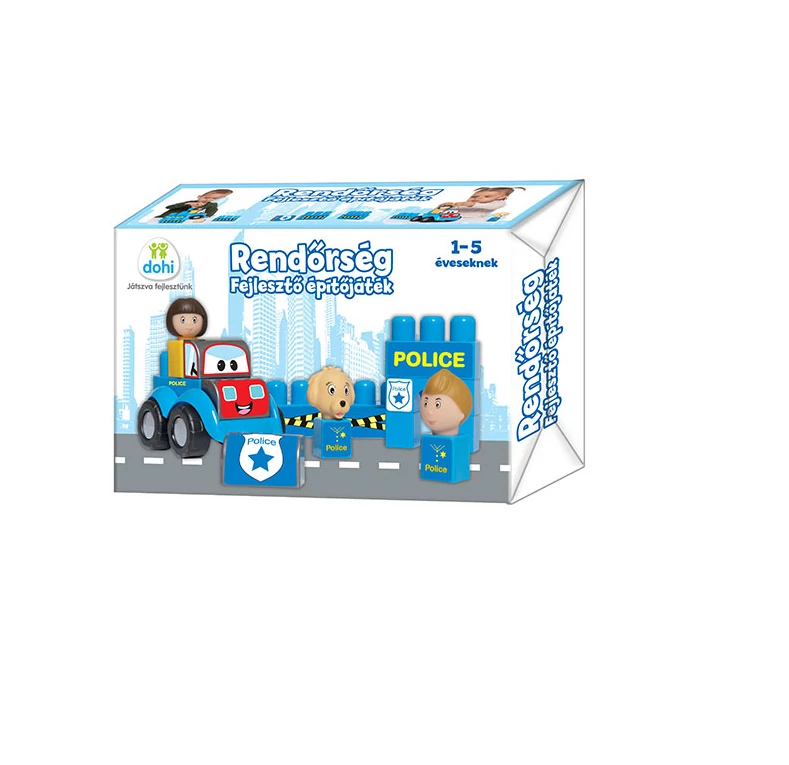 A Dohány Toys által megalkotott Fejlesztő építőjáték egy mesés Rendőrség kedves figuráit és vagány járművét hozza el a piciknek. A minőségi játékelemek hosszú időre leköthetik gyermeke figyelmét, ha szeme fénye odavan az építőjátékokért és imádja a rendőrautókat. Mert a csomagolás kibontása után rögtön meg is kezdődhet az izgalmas móka, ugyanis a dobozban megbújó építőkockákból számtalan érdekes torony, rendőrségi helyszín vagy akár még egy mini őrs is megalkotható.