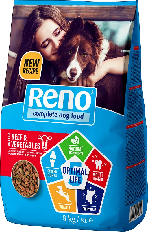 Reno marha-zöldség optimal life kutyaeledel 8kg - csak egyedi szállítással vagy személyes átvétellel
