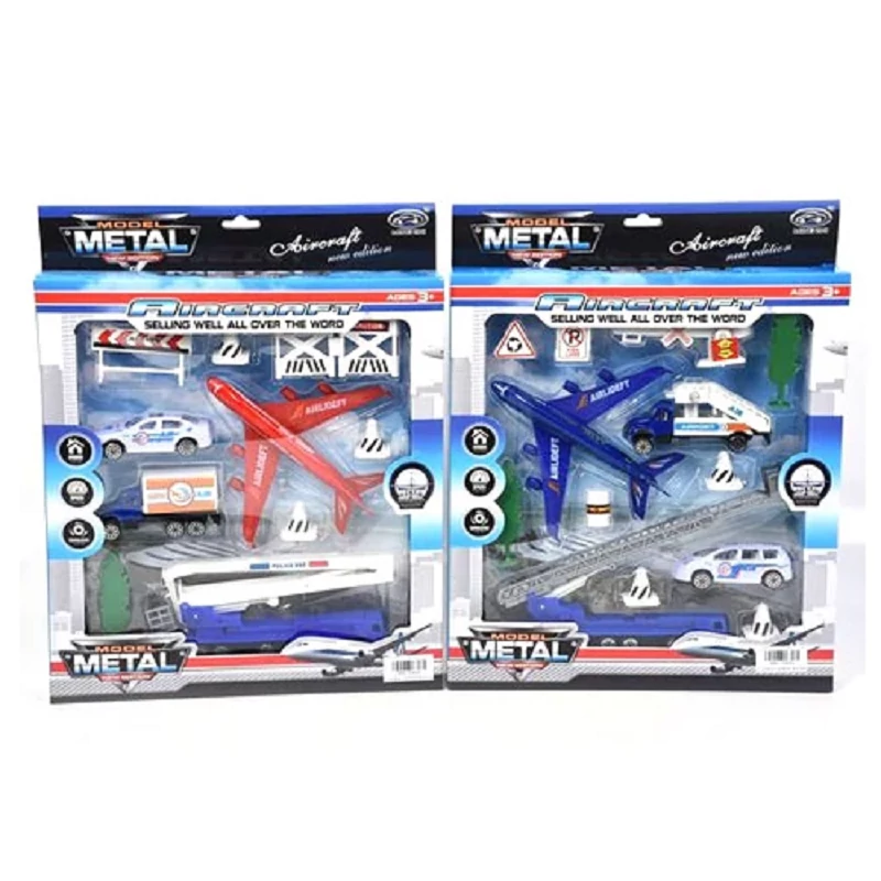A szettben piros vagy kék repülőt talál majd gyermeked, valamint különböző reptéri autókat, bójákat, darut vagy kerítést is akár.