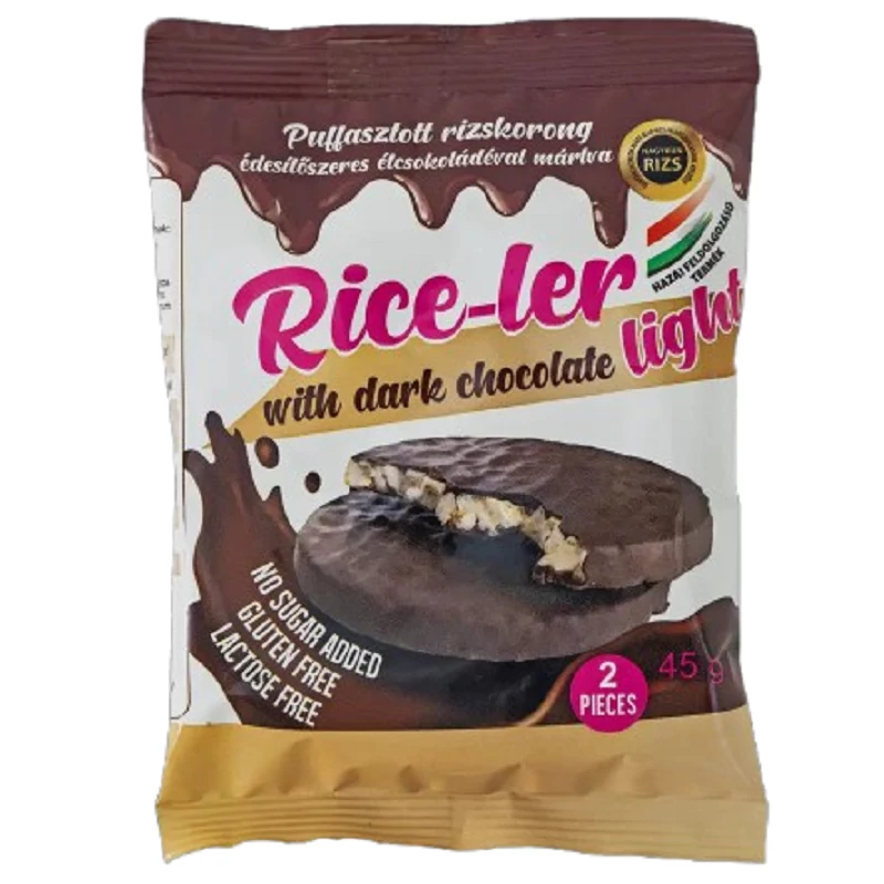 Gluténmentes Rice-ler light étcsokoládéba mártott puffasztott rizskorong, édesítőszerrel 45g