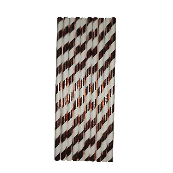 Rosegold-fehér csíkos party papír szívószál 19,5cm 10db-os kiszerelésben