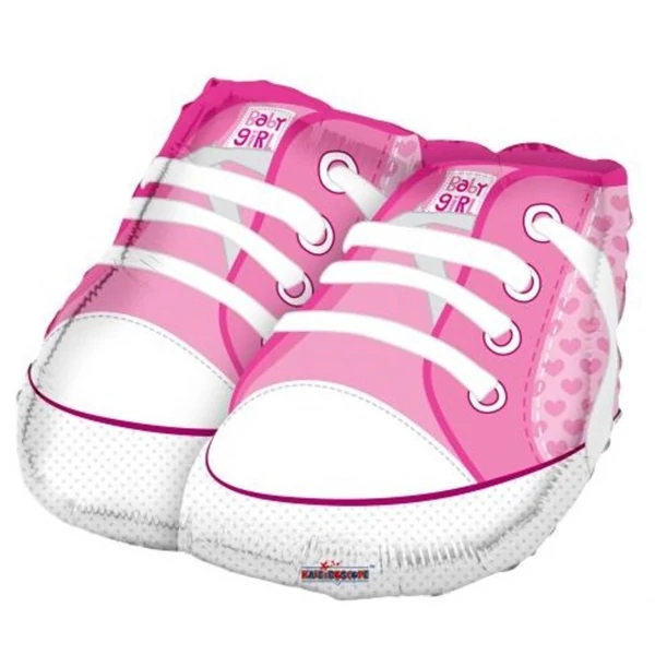 Különleges babacipő formájú fólia lufi rózsaszínben. Levegővel és héliummal egyaránt fújható, önzáró szeleppel. Nagyméretű. Mérete 45 cm.