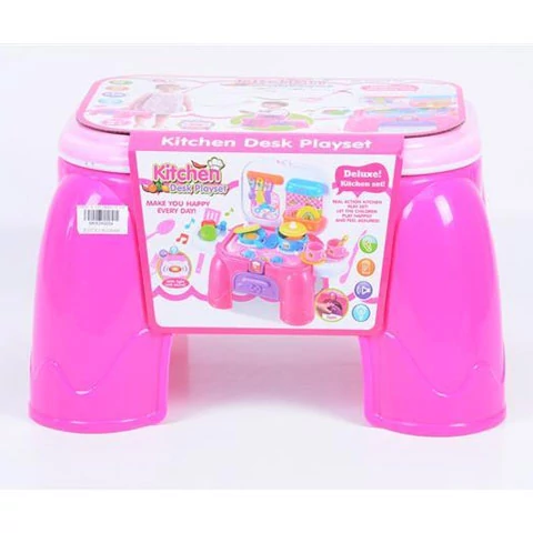 Rózsaszín játék konyhai készlet hordozható tároló ülőkével