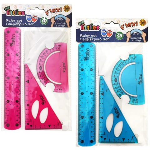 Remek vonalzó szettel készülhetnek a gyerekek az iskolai tanórákra, melyeket a nekik tetsző színváltozatban szerezhetnek be. Kék vagy rózsaszín készlettel indulhatnak suliba, mely tartalmaz egy egyenes 20cm-es vonalzót, egy derékszögű vonalzót, valamint egy szögmérőt is. A vonalzók rugalmas műanyagból készültek, így enyhe hajlítást is kibírnak törés nélkül a hosszabb használhatóság érdekében.