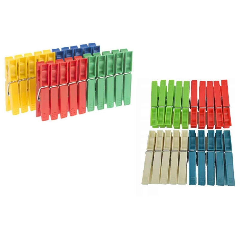Praktikus, színes műanyag ruhacsipesz 20 darabos csomagban – ideális ruhák, törölközők, ágyneműk szárításához a szabadban vagy beltéri szárítóra, erős tartással és szélállósággal.
