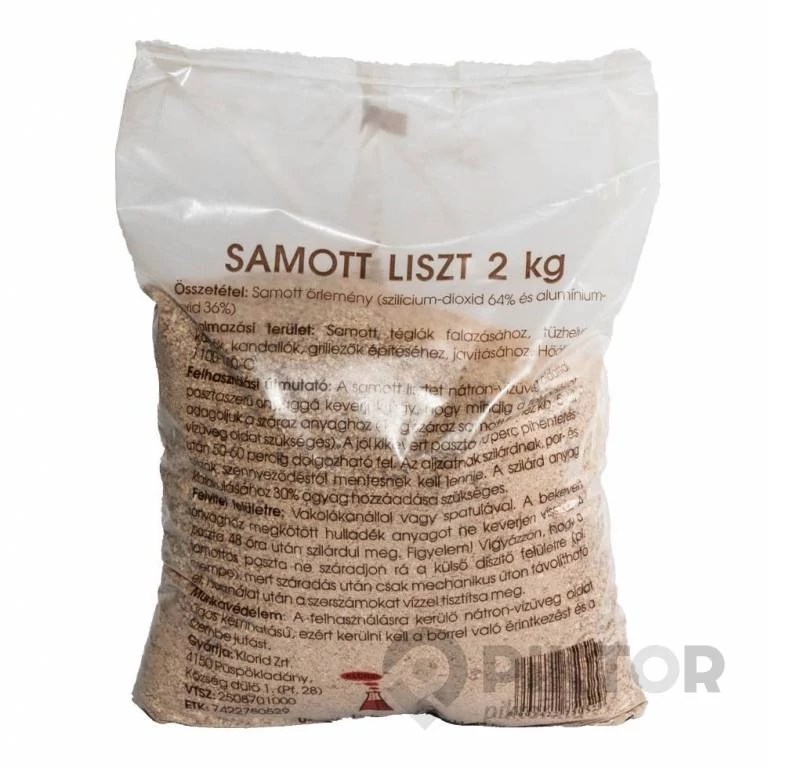 Erősen égetett, durva szemcsésre őrölt 1200 °C-ig hőálló anyag.