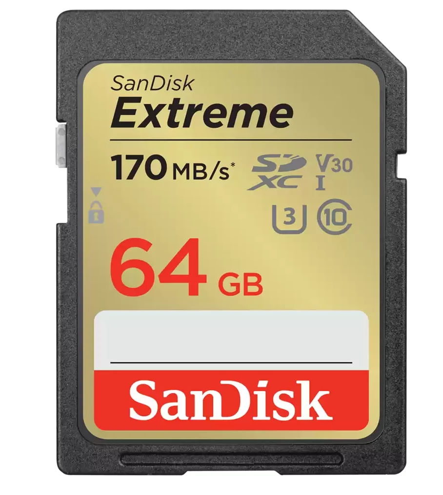 Sandisk sdxc extreme kártya 64gb, 170/80 mb/s , uhs-i, class 10, u3, v30 (121579)