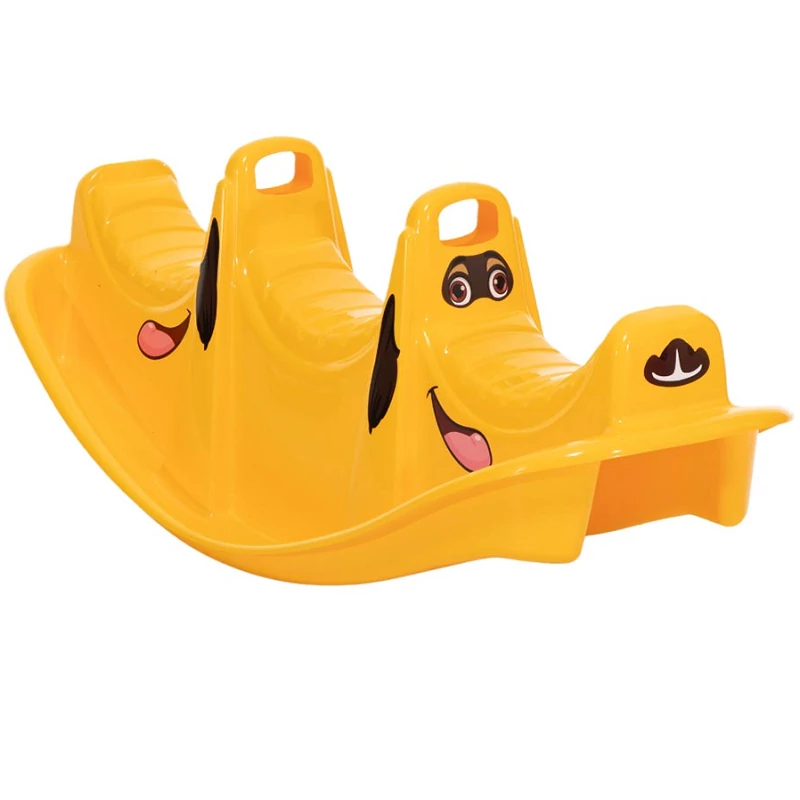 Ez az élénk sárga libikóka garantáltan a gyerekek kedvence lesz! A mókás kutyusos mintával díszített libikóka három kényelmes ülőhelyet kínál, így akár hárman is egyszerre hintázhatnak rajta. A játék színes és vidám megjelenése mellett a stabil fogantyúk és az ergonomikus kialakítás gondoskodik a biztonságról is, így a kicsik kényelmesen és biztonságosan játszhatnak.