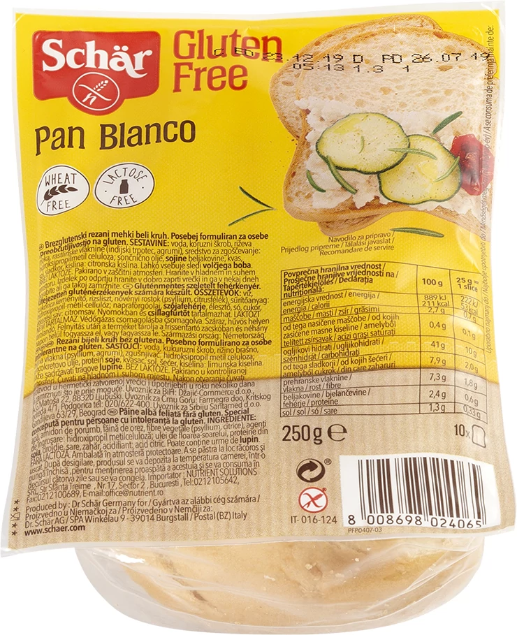 - A Pan Blanco gluténmentes kenyér extra puha fehér kenyér, mely hőkezelés nélkül is azonnal fogyasztható. A szeletelt kenyér védőgázas csomagolásban kerül forgalomba, így hosszabban eltartható. Laktóz- és gluténmentes.