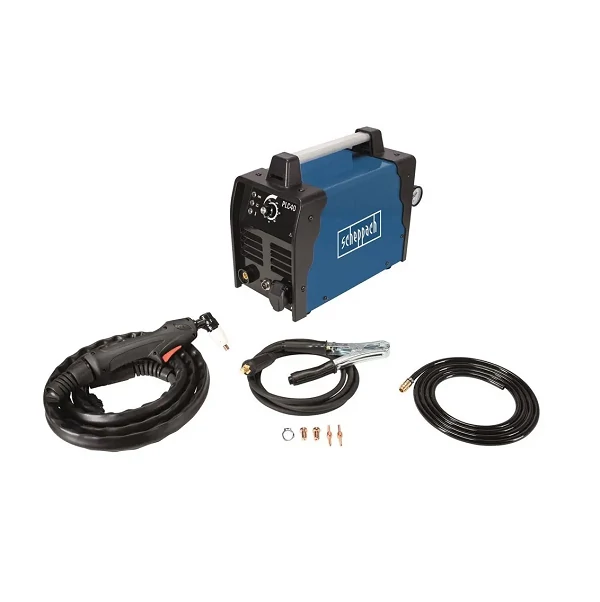 A Scheppach PLC 40 plazmavágó egy kiváló teljesítményű, mégis kompakt gép, mely ideális vas, rozsdamenetes acél, acéllemez, alumínium vagy réz vágására 12 mm anyagvastagságig. Az elektronikusan szabályozható, csendes és pontos plazmaívnek köszönhetően pontos és tiszta, egyenes vagy ívelt vágások végezhetők. A gépen folyamatosan állítható a vágóáram tartománya 15 és 40 A között és rendelkezik, led diódával ellenőrizhető, túlterhelés védelemmel is. Minőségi, 2,5 m-es munkakábellel, nagyon erős testcsipesszel ellátott, 2 m-es testkábellel és 2 m-es levegőcsővel van szerelve. Ugyancsak rendelkezik nyomásmérő manométerrel ellátott levegőcsatlakozóval, tartós acél házzal és kényelmes markolattal a könnyű mozgathatóság érdekében. A csomagolás tartalmaz 3 fúvókát és 3 elektródát.