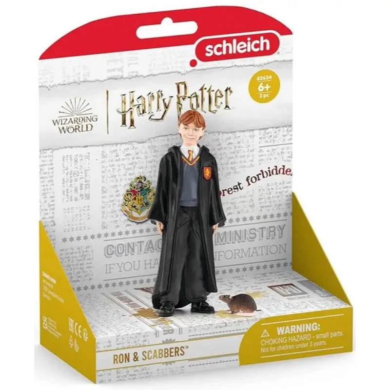 A Schleich Harry Potter - Ron és Makesz játék szett elhozza a varázsvilág egyik legkedveltebb szereplőjét és hűséges háziállatát. A szett tartalmazza Ron Weasley részletgazdag figuráját Griffendél talárban, valamint vállán vagy mellette Makesz, a különleges patkány kapott helyet, aki sokáig Ron hűséges társa volt, míg ki nem derült valódi kiléte. A figurák élethű kidolgozásúak és kézzel festettek, hogy tökéletesen visszaadják a filmekben látott karaktereket. A strapabíró anyagból készült szett ideális gyűjtéshez és játékhoz egyaránt, így minden Harry Potter-rajongó számára remek választás.