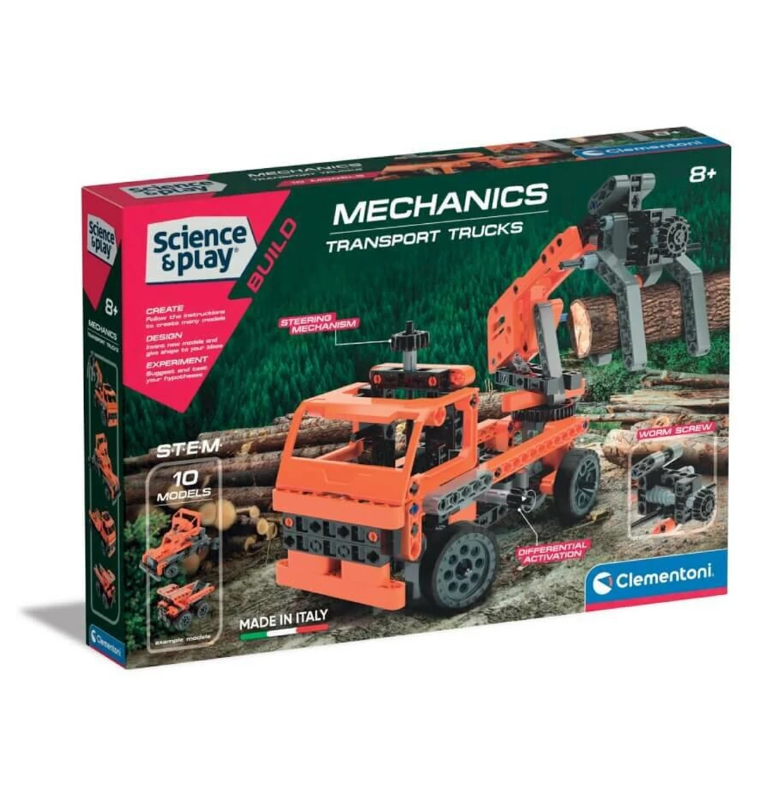 A Clementoni Science and Play Mechanikus Műhely - Teherautó 10 az 1-ben építőjátékkal a gyerekeknek lehetősége nyílik 10 különböző jármű összeállítására. Az útmutató segítségével az alap 3 szerkezet elkészíthető, míg a maradék 7 modellt egy speciális applikáció irányítása alatt hozhatják létre.
