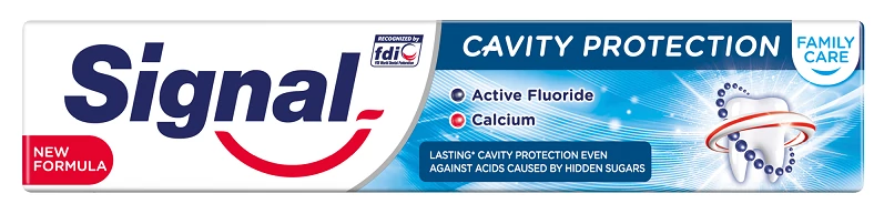 Aktív mikro-kálciumot és fluoridot tartalmazó formulációjával 50%-kal növeli a kálcium mennyiségét. A Signal Cavity Protection ezáltal segít helyreállítani a fogszuvasodás első láthatatlan jeleit és védelmet biztosít a fogak számára két fogmosás között is.