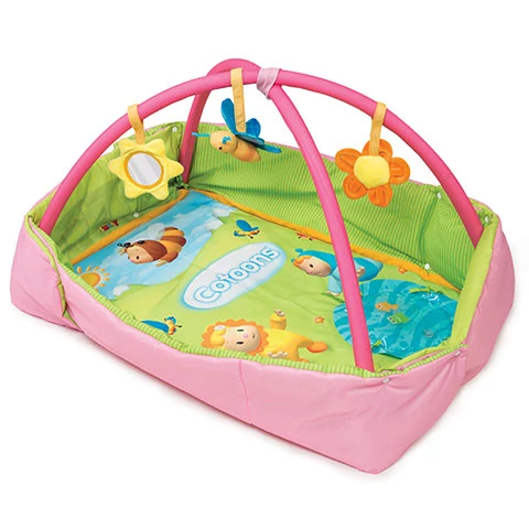 A babák fekhelyeként szolgáló szőnyeg nagy, puha és kényelmes a kicsik számára, ráadásul az széleket felhajtva egyfajta oldalfalat hozhatunk létre ezzel is megnehezítve azt, hogy a babák kiguruljanak a játék alól.