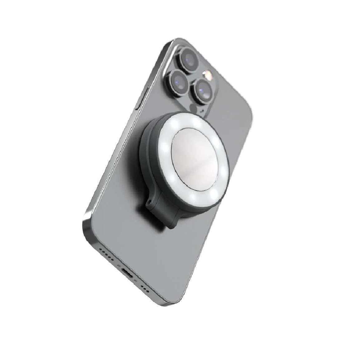 Funkció áttekintése LED-gyűrű a jelenet megvilágításához, amikor okostelefonnal fényképez és videóz Gyors és biztonságos beállítás a MagSafe mágnesrendszerrel vagy egy mágneses matricával (tartozék) Négy fényerőszint Rugalmas használat különböző szögekben Tükörrel felszerelve a keret könnyű középre állításához szelfikhez Töltés USB-A porton keresztül Kompakt méret, könnyű és hordozható Szín: sötétkék