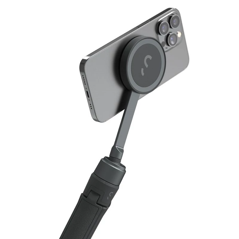 Mágneses állvány és szelfibot egyben a fotók és videók kényelmes rögzítéséhez telefonnal Gyors és biztonságos beállítás a MagSafe mágnesrendszerrel vagy egy mágneses matricával (tartozék)