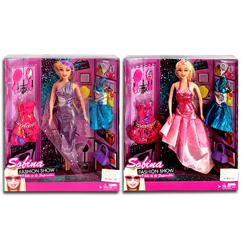Sofina Fashion Show party ruhás baba extra ruhákkal és kiegészítőkkel 2 változatban