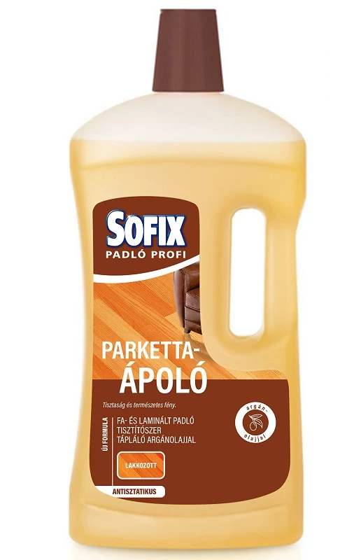 Argánolajat tartalmazó formulájával a Sofix Parkettaápoló könnyen eltávolítja a port és szennyeződéseket a fa- és laminált padló felületéről és ápolja is azokat, ragyogó tisztaságot hagyva maga után. Antisztatikus és polírozó tulajdonságokkal rendelkezik.