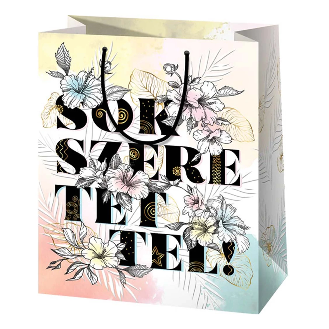 Sok Szeretettel! mintás nagy méretű exkluzív ajándéktáska 27x14x33cm-es
