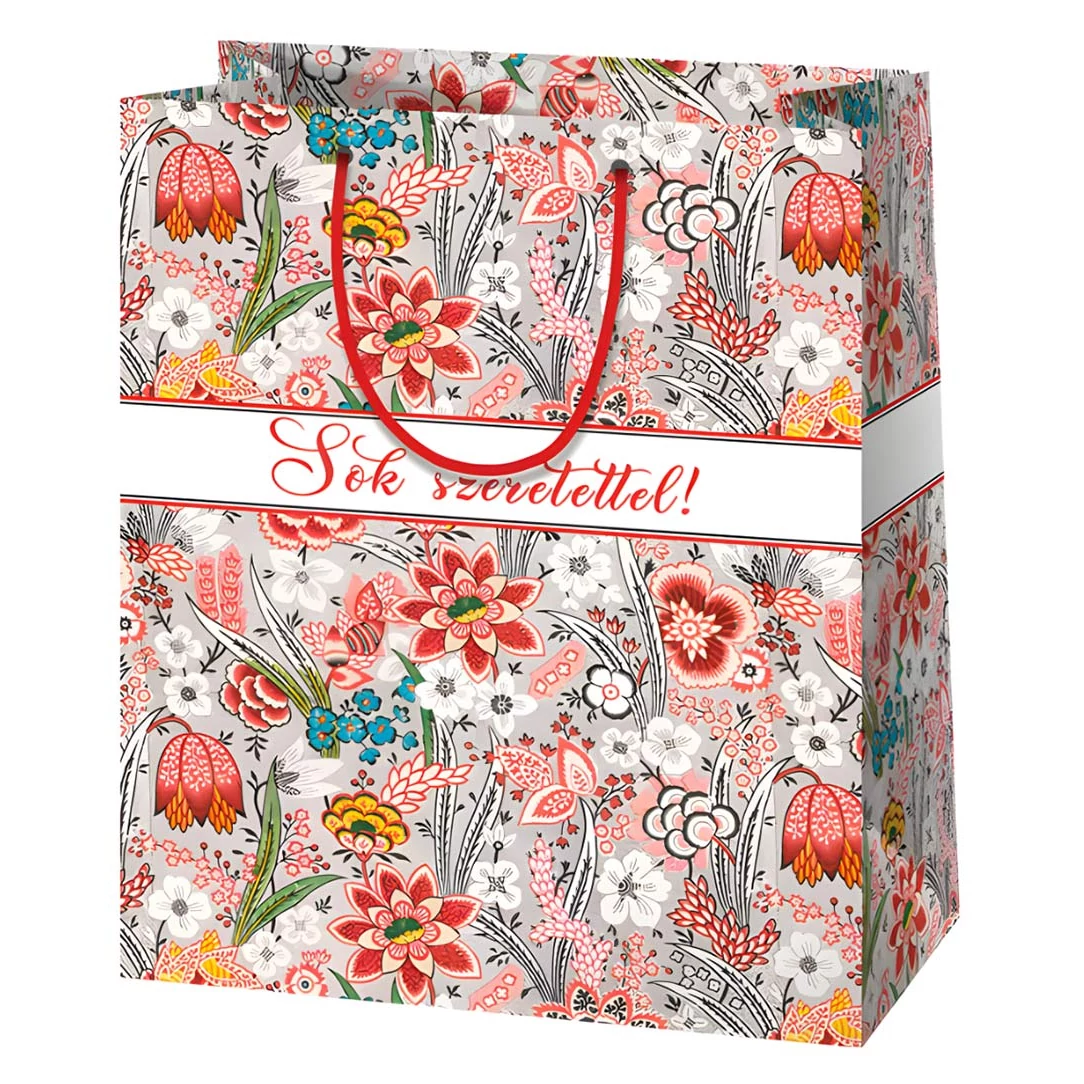 Sok szeretettel! virágos közepes méretű ajándéktáska 18x23x10cm