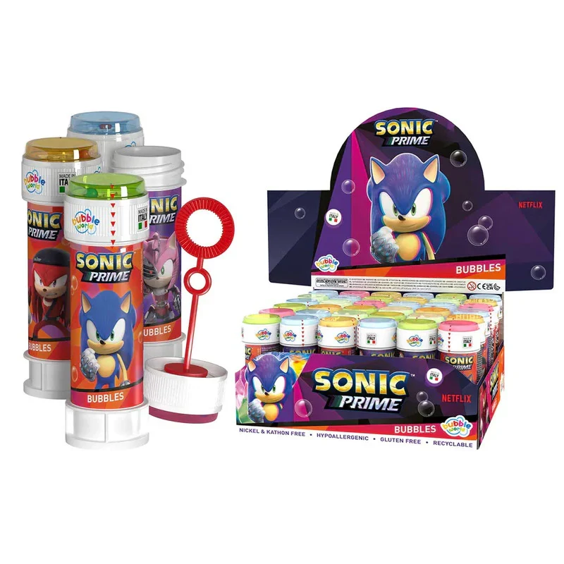 Sonic mintával ellátott buborékfújó, mely tetején labirintus játék található, ideális választás születésnapra, kerti partikhoz, vagy bármilyen eseményhez, ahol garantált a szórakozás.