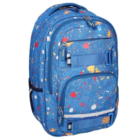 Szinte sugárzik ebből a táskából a fiatalos vidámság, amit első sorban az élénk kék színének, és a festékfoltos mintájának köszönhet, ami egészen biztos könnyedén elnyeri majd a gyerekek tetszését. A Campus iskolatáska kényelméről a párnázott hátrész valamint a széles, állítható vállpántok gondoskodnak. A kényelem mellett természetesen a praktikus kialakítás is jellemző a táskára, hiszen a nagy rekesz egy laptop tartóval is rendelkezik, a kisebb zsebek pedig a rendszerezésben segítenek. A táska fényvisszaverő díszítést is kapott a nagyobb biztonság érdekében.