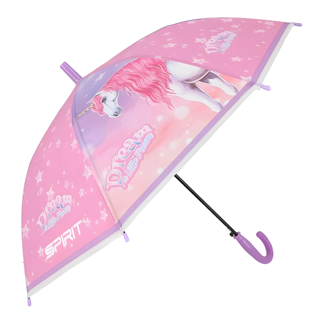Az esernyő műanyag kampós fogantyúja kényelmes fogást biztosít, így könnyedén nyithatod és zárhatod az esernyőt. A rózsaszín alapon repkedő unikornisos minta egyedivé és varázslatossá teszi az esernyőt, amely minden pillanatban örömet és csodát csempész a napjaidba.