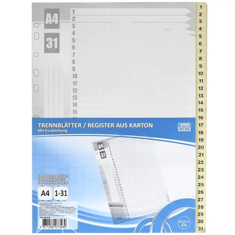 Rendkívül egyszerű lesz a mappa tartalmának rendszerezése ezentúl, hiszen ezek az elválasztó lapok tökéletesen elkülönítik a témaköröket. A számozott füllel rendelkező elválasztólapokhoz tartozik egy első oldalként használható tartalomjegyzék lap is, melyen feljegyezhetők a számokhoz tartozó témakörök. A gyűrűs mappán könnyen lefűzhetők az elválasztó lapok, hiszen 11-lyukas kialakítással készültek.