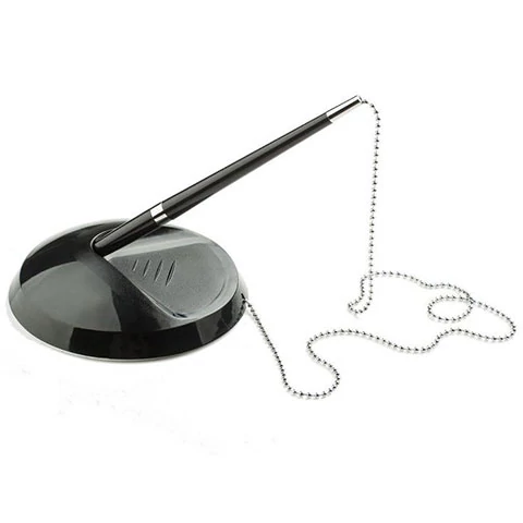 Ennek az elegáns asztali golyóstollnak első sorban olyan helyeken lesz nagy haszna, ahol az ügyfelek számára elérhetővé kell tenni írószereket, mint mondjuk a különféle ügyfélfogadó pontok, hivatalok, recepciók vagy közösségi terek, ahol sokan megfordulnak, de koránt sem biztos, hogy mindenkinél van toll, viszont egy-egy nyomtatvány kitöltése, vagy szerződés aláírása enélkül megoldhatatlan. A kényelmes fogású toll egy golyós lánccal van az tartójához erősítve, így biztos, hogy mindig kéznél lesz, de senki nem rakja el automatikusan.