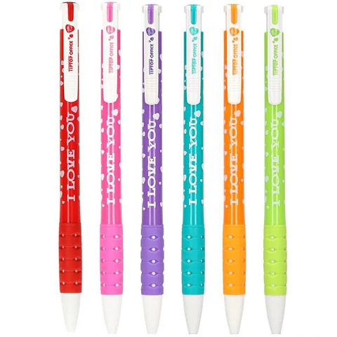 Izgalmas színekben érkezik a kicsik tolltartójába ez a praktikus golyóstoll, hiszen a tolltest összesen hat különböző színű lehet. A golyóstól tintája mindegyikben kék színű, és összesen 1000 méternyi íráshosszúsággal bír. A kapcsolóval ellátott golyóstoll színes külsején "I Love You" felirat olvasható, valamint szívecskés mintát is megfigyelhetnek rajta a kislányok. A tolltartó praktikus darabja lesz ez a szuper toll, mellyel kényelmesen írhatnak a legkisebbek is a puha fogófelületnek köszönhetően.