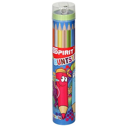 Spirit: Háromszögletű színesceruza hegyezővel 12db-os szett henger alakú tárolóban