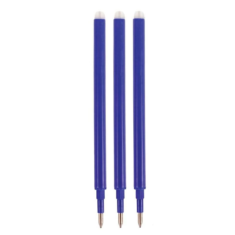 A zselés tollak rendkívül kényelmes írást és nagyon szép vonalvezetést eredményeznek, ráadásul ebben a csomagban található három betét olyan zseléanyagot kapott, ami a megfelelő radírral könnyen eltüntethető. A csomag három darab tollbetétet tartalmaz, amelynek a műanyag tartályában 0,7 gramm kék színű zselé kapott helyet. A kiváló minőségnek köszönhetően, a tollbetét igazán vékony vonalvastagságot eredményez, amit mintegy kétszáz méternyi vonalhosszon keresztül használhatunk.